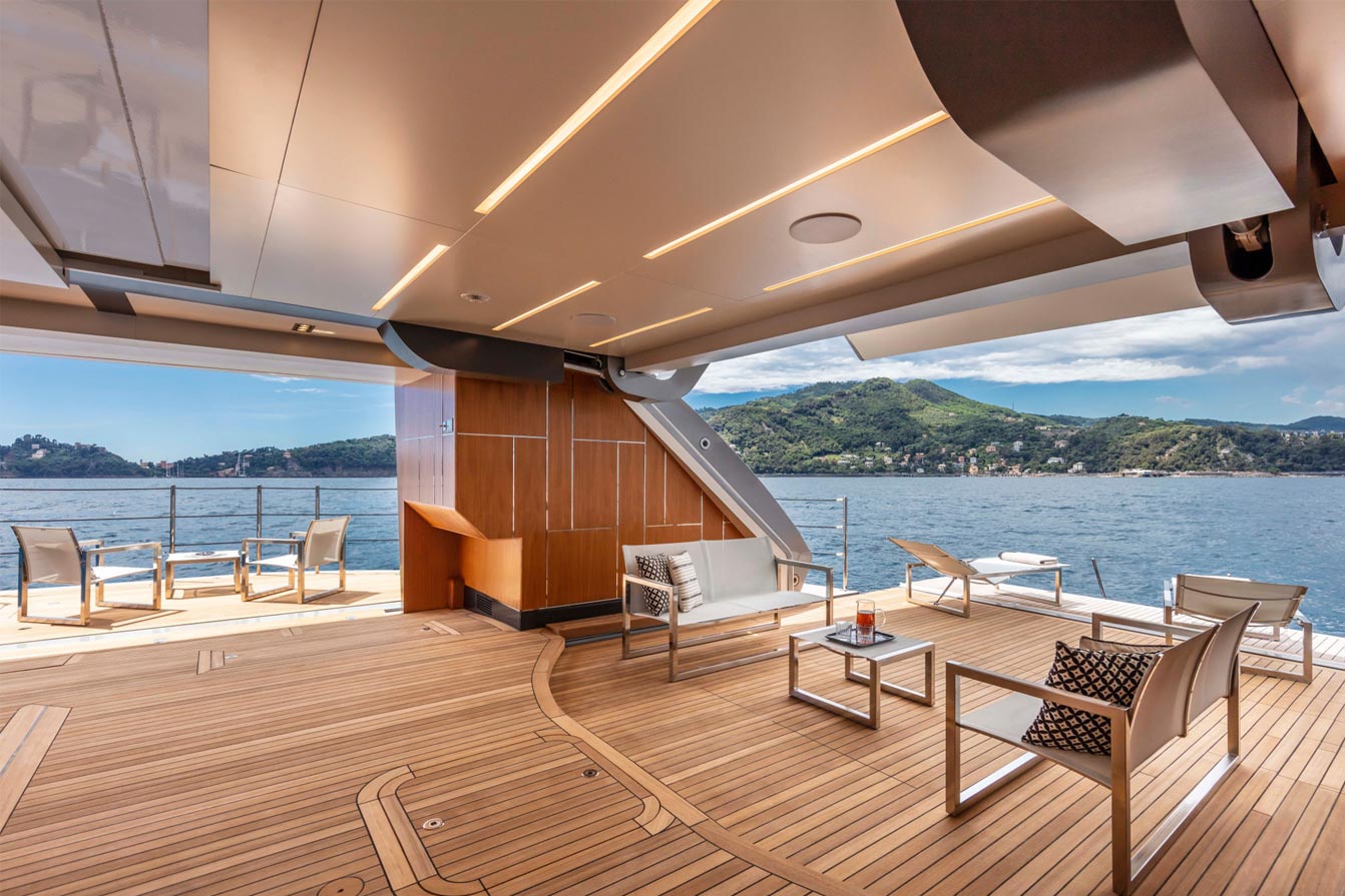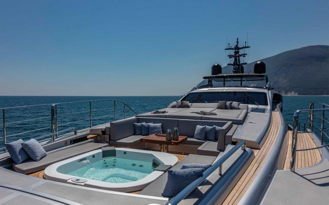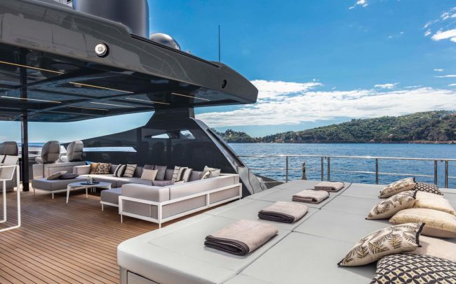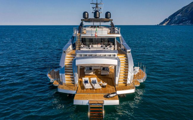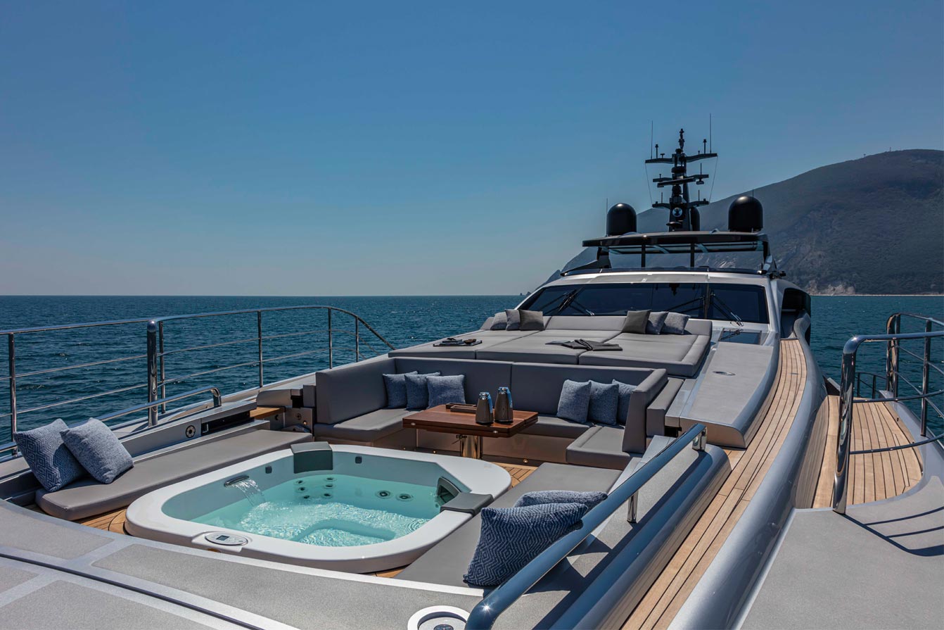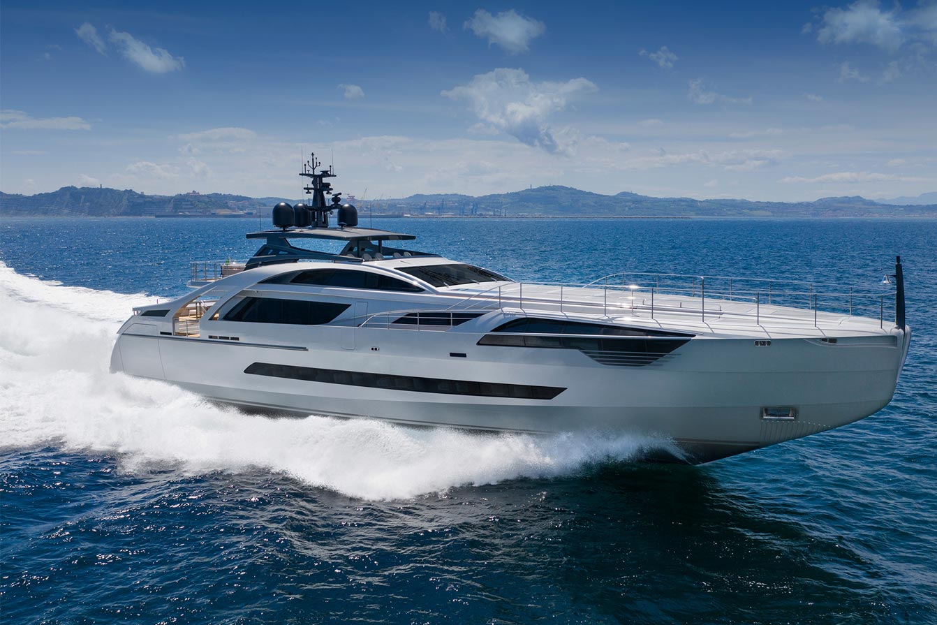 The ultimate expression of the Pershing thrill. The Pershing 140 is not only Pershing’s first all-aluminum superyacht. It is also the first yacht with a raised helm station directly connected to the sun deck. It is the first to set the area dedicated to the owner on the main deck and is also the first to have a beach area that can open fully on three sides.